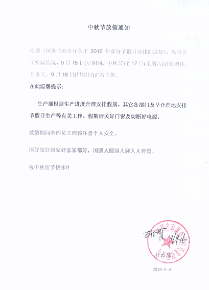 科姆森集團(tuán)中秋節(jié)放假通知